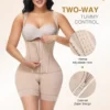 1. Dual Closure System for Extra Support The full body shaper includes both an adjustable inner buckle and an outer zipper closure which together provide enhanced support and user-friendly adjustments. The two-way closure system provides both a tight fit and a smooth appearance beneath garments.