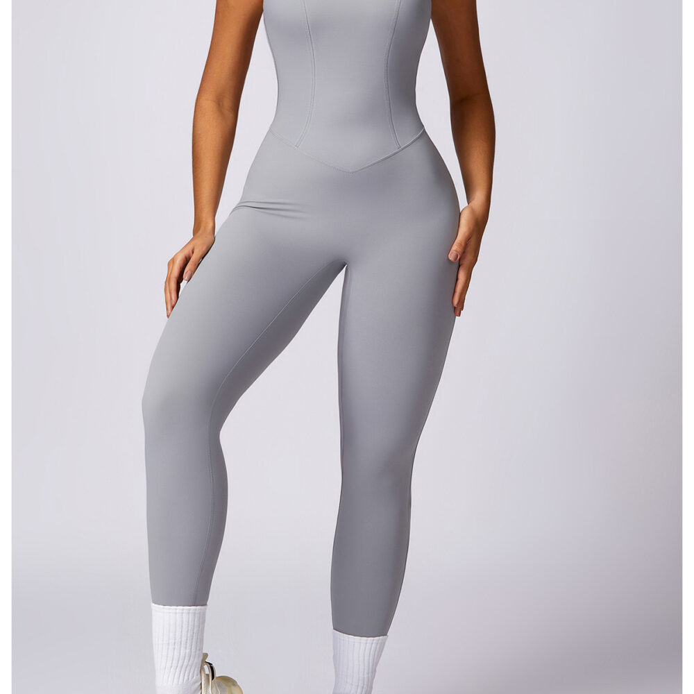 Custom Seamless Women’s Yoga Jumpsuit Breathable, Zip Back, Spandex/Cotton, Gym Workout Bodysuit