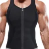 Take your workout to the next level by using the Men Neoprene Sauna Zipper Waist Trainer Vest Tank Top Trimmer Body Shaper. This sauna vest built with high-quality neoprene functions to maintain body heat which promotes sweating and enhances fat burning during physical activities. The body shaping vest combines strong anti-slip metal zipper functionality with double adjustable waist belts and wide support straps to shape your waist while correcting posture and enhancing body contour.